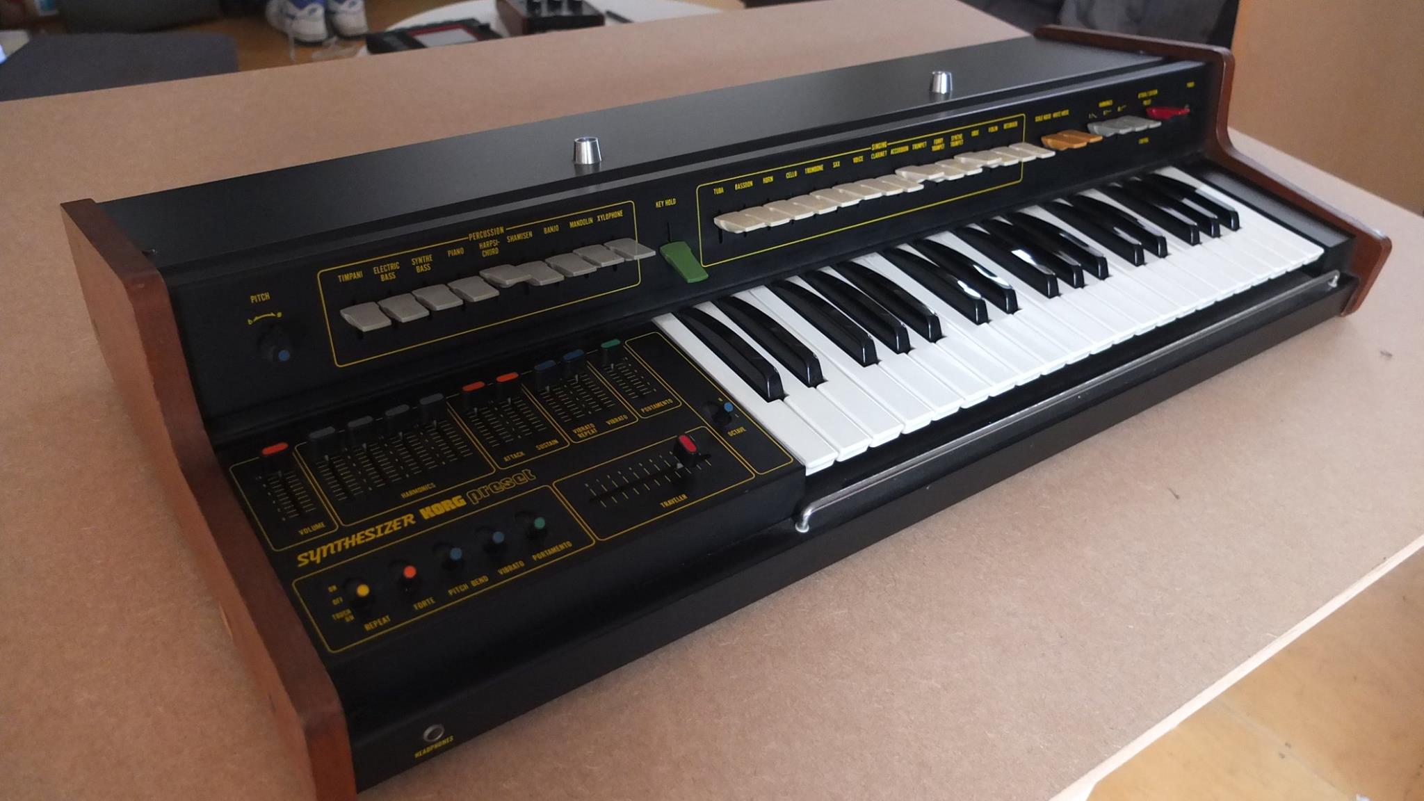 Description | This is the rare Korg 900PS analog Preset Synthesizer. There seems to be some confusion about the naming (sometimes called PS900), especially since the face plate says "Synthesizer Korg Preset." The 900PS is quite a basic but very interesting monosynth. The 900PS definitely 'borrowed' some ideas from the Pro-Soloist. Instant selection of 29 different tone colors. From the sweet sound of a violin to the chugging of a steam locomotive. Sensitive soft-touch switches and plentiful controls provide a wide variety of effects including vibrato, repeat, even the harmonics you need for a Hammond organ tone.